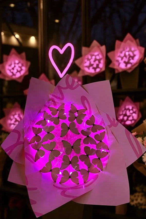 Led Işıklı Pembe Kelebek Buketi